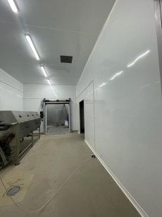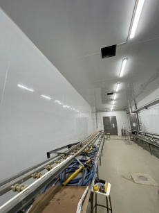 Anul acesta a venit din nou timpul ca firma sa renoveze panourile sandwich din care sunt facute aproape toate spatiile de productie, iar in loc de clasica vopsire care in general nu dureaza mai mult de 1-2 ani, Pomarom a decis sa reconditioneze panourile sandwich de pe pereti si tavane cu Sistemul Antibacterian MedClyn.
